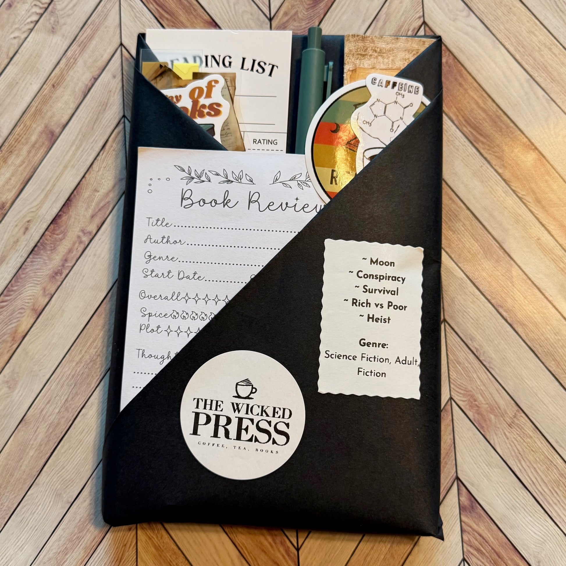 Each of our "Blind Date with a Book" comes with various stickers (3-4), bookmarks, annotation tabs, and a pen. Each book condition is new, and every month we curate a distinct selection of books.