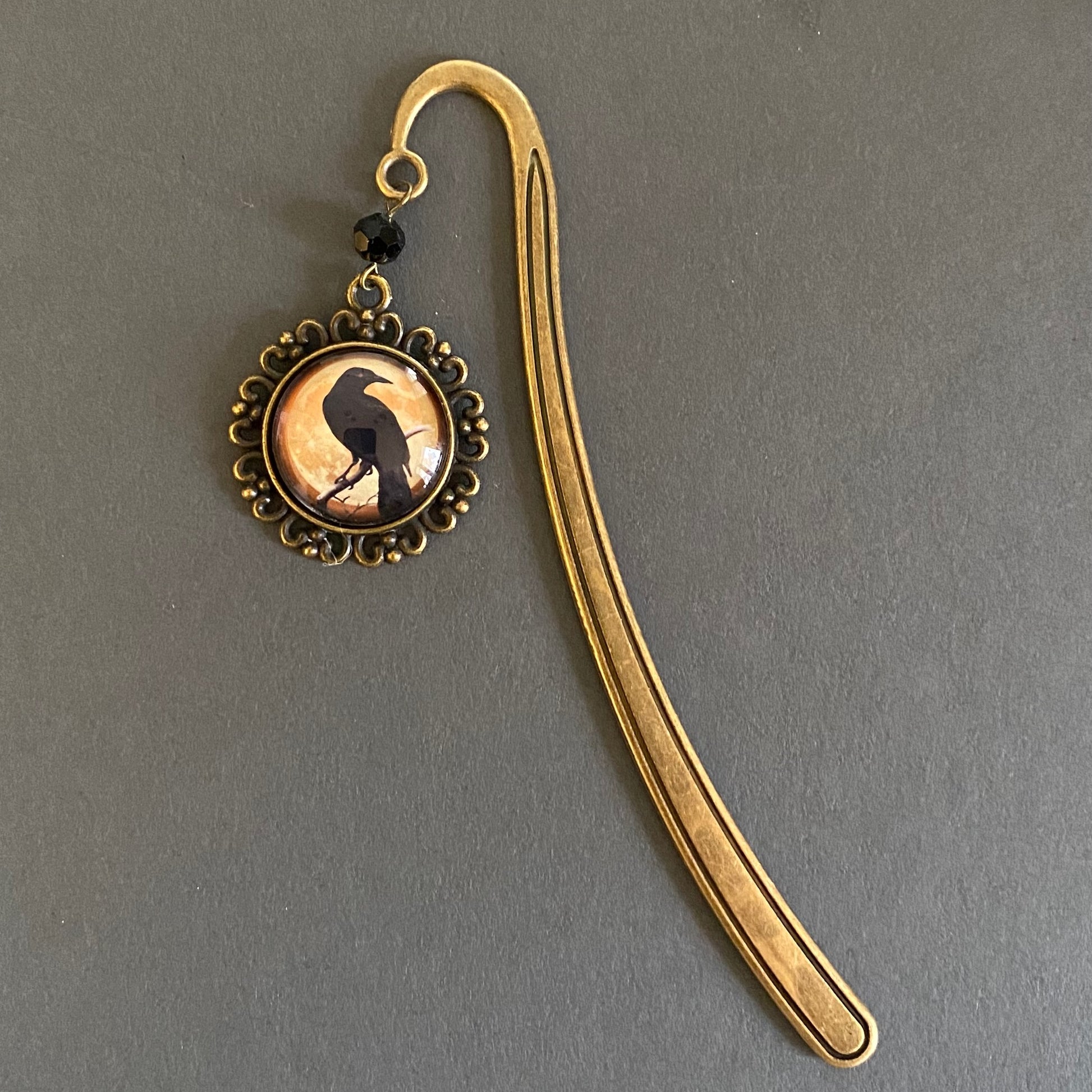 Sturdy bronze bookmark with dangling accent. Book hooks work by sliding the long metal shaft down between the pages of your book like a traditional bookmark, allowing the accent to dangle along the spine.