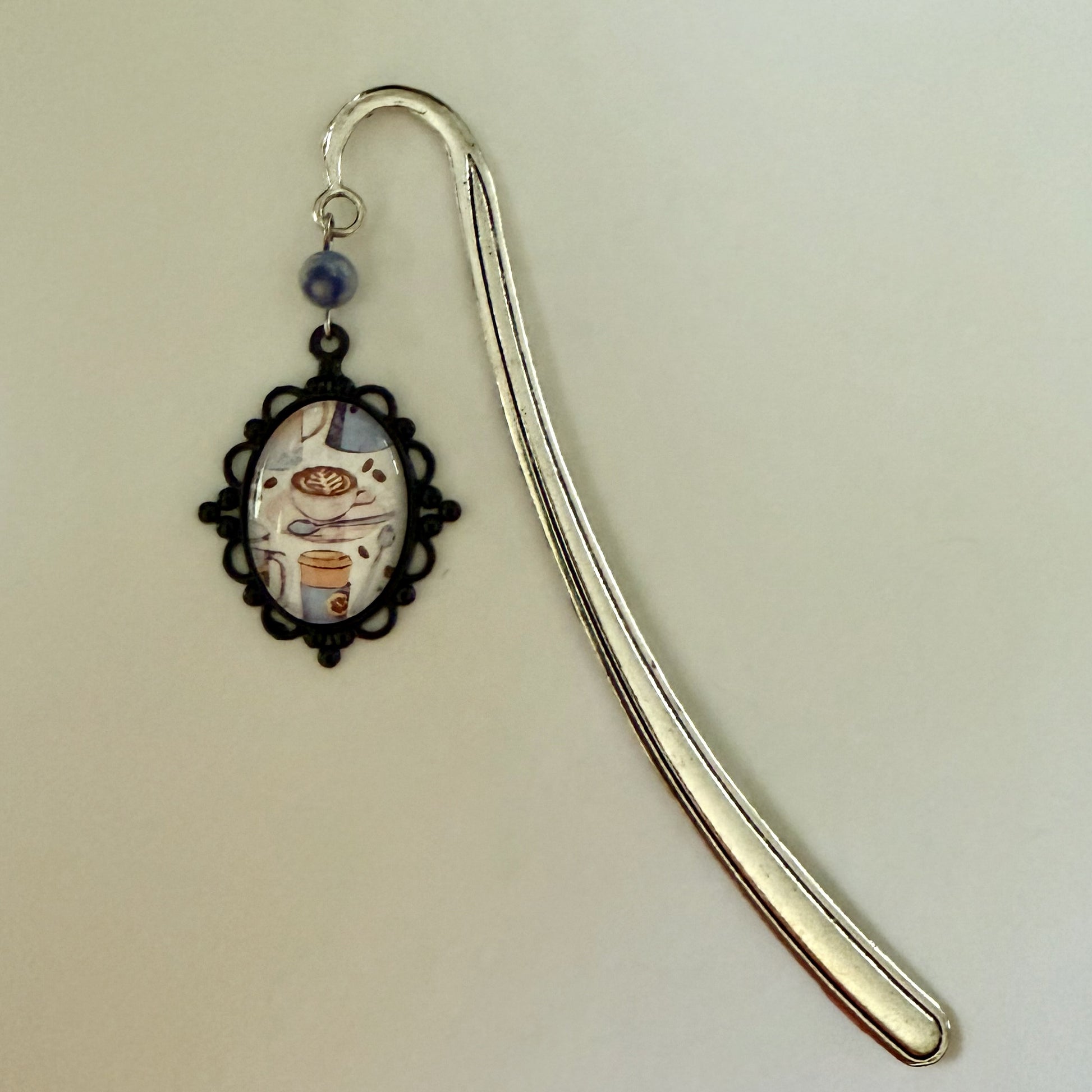 Sturdy silver tone bookmark with dangling accent. Book hooks work by sliding the long metal shaft down between the pages of your book like a traditional bookmark, allowing the accent to dangle along the spine.
