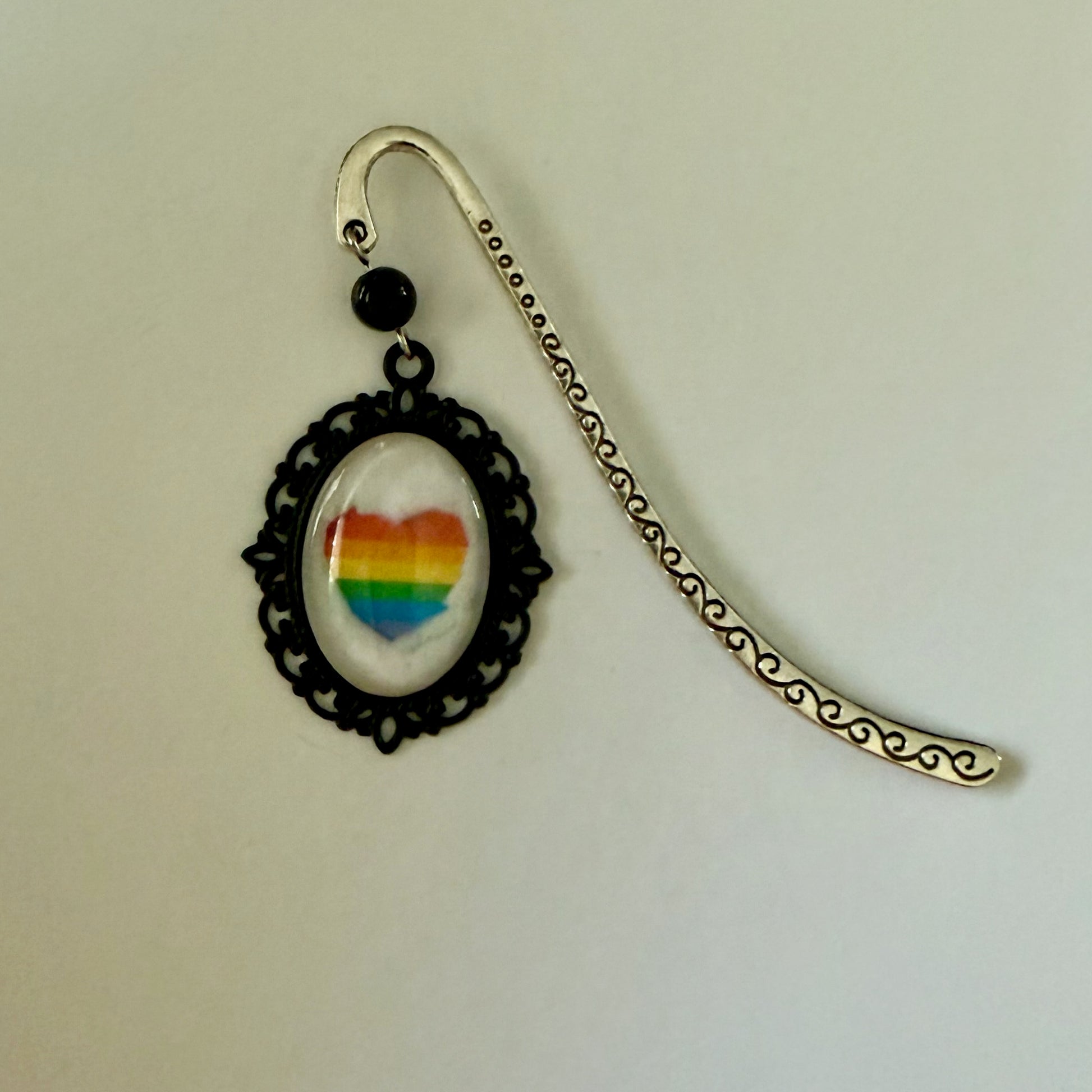 Sturdy silver tone bookmark with dangling accent. Book hooks work by sliding the long metal shaft down between the pages of your book like a traditional bookmark, allowing the accent to dangle along the spine.