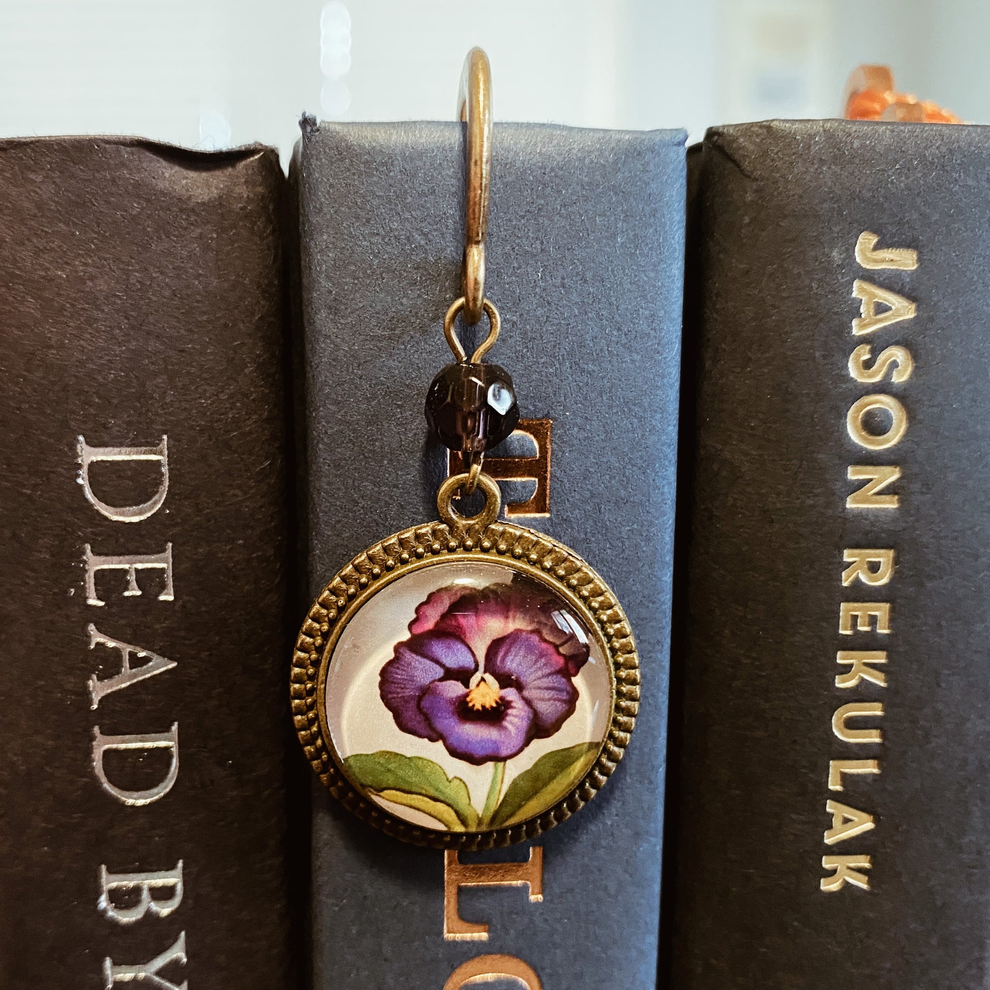 Sturdy bronze bookmark with dangling accent. Book hooks work by sliding the long metal shaft down between the pages of your book like a traditional bookmark, allowing the accent to dangle along the spine.