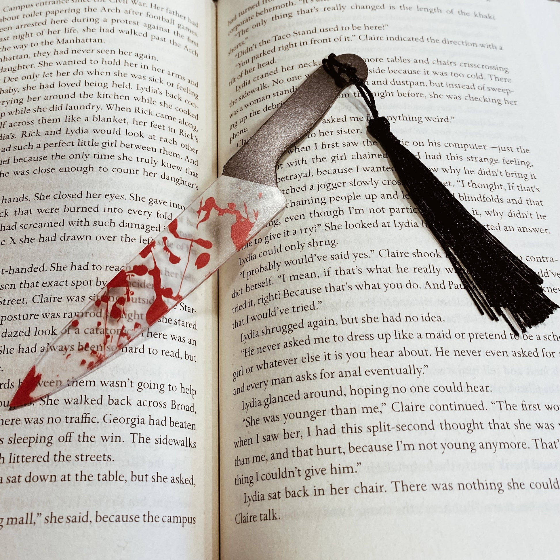 Ready to take your reading experience to the next level of spine-tingling? Introducing our Bloody Knife bookmark—where every page turn comes with just the right amount of scream.
